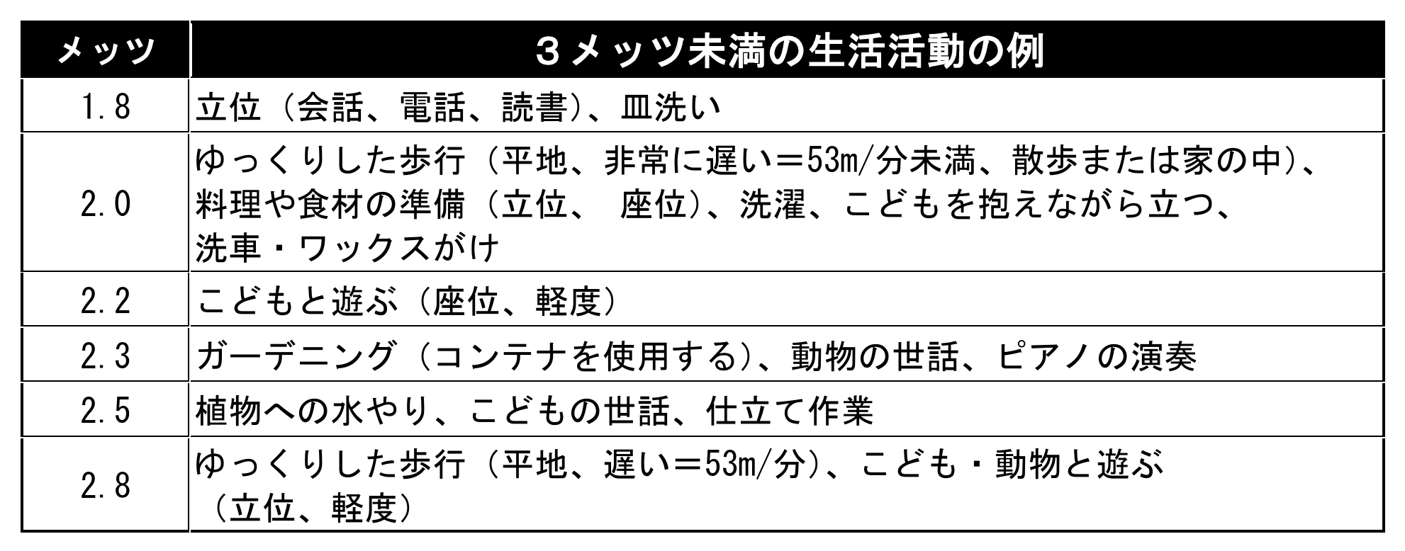 では、3メッツ未満の身体活動は意味がないのかというと、そうではありません。